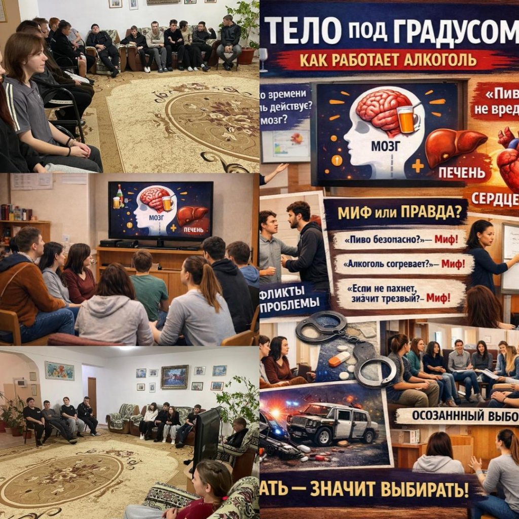 29 қантар күні “ Адал Азамат” бағдарламасына сәйкес жатаханада “ Дене дәрежесі: алкоголь қалай жұмыс істейді” презентациясын қолдана отырып сөйдесу өткізілді.