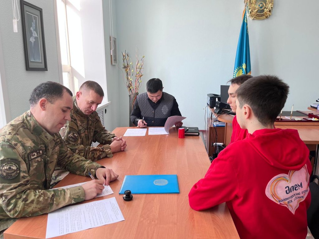 2 ақпанда Есіл ауданының төтенше жағдайлар бөлімі мен "Әлем"еріктілер отряды арасында ынтымақтастық және өзара іс-қимыл туралы меморандум жасалды. Меморандумға төтенше жағдайлар бөлімі тарапынан бөлім бастығының міндетін атқарушы К.В.Ритчер, волонтерлік жасақ тарапынан — колледж директоры М. Ш. Мұхатаев қол қойды.