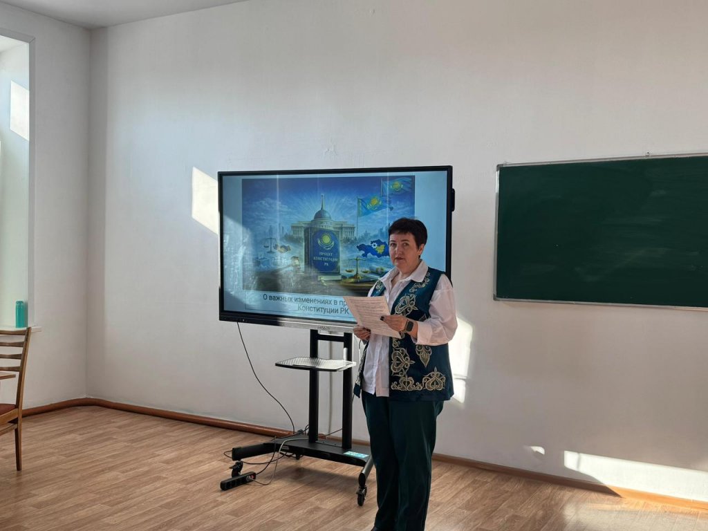 12 ақпанда жаңа Конституция жобасы мәселелері бойынша педагогикалық ұжыммен ақпараттық-түсіндіру кездесуі өтті. Іс-шараны оқытушы А.А.Семерная өткізді. Кездесу барысында конституциялық өзгерістердің негізгі ережелері мен негізгі бағыттары, олардың мемлекет пен қоғамның дамуы үшін маңызы қарастырылды. Азаматтардың құқықтары мен міндеттеріне, заңның үстемдігі мен жеке жауапкершілік қағидаттарына ерекше назар аударылды