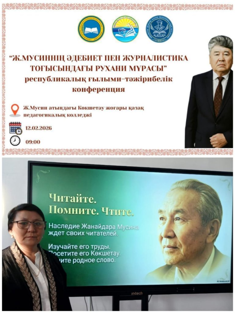 Қазақ тілі пәнінің оқытушысы Қапанова Гүлжанат Қадырбекқызы "Әдебиет пен журналистиканың қиылысында Ж.Мусиннің рухани мұрасы" атты республикалық ғылыми-тәжірибелік конференция жұмысына "Жанайдар Мусин: Жанрлардың қиылысында. Әдебиет пен журналистиканың рухани мұрасы" баяндамасымен қатысты.